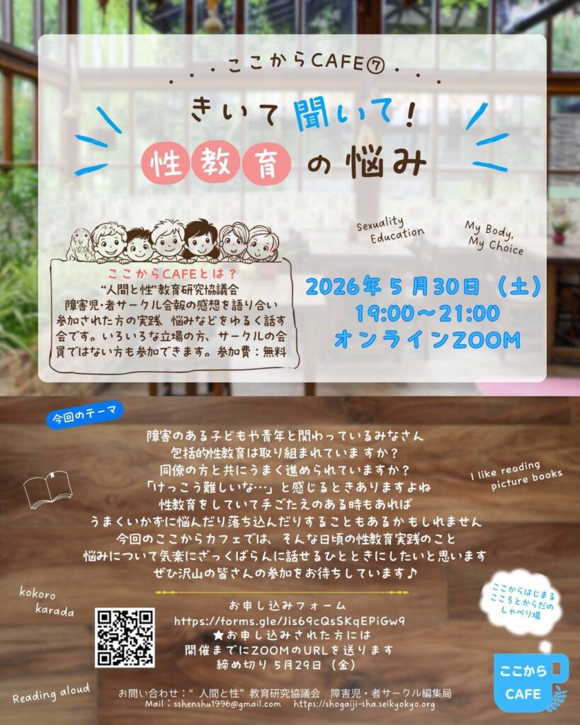 障害のある子どもや青年とともに包括的性教育に取り組まれている方、気楽にご参加ください。